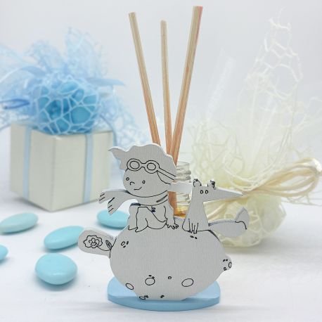 Realizzata con cura in legno di colore bianco, questa bomboniera ha una base celeste che rappresenta il cielo sereno. Al centro, troverai il Piccolo Principe e la Volpe,seduti, un’immagine che cattura la magia e l’innocenza di questa storia intramontabile.